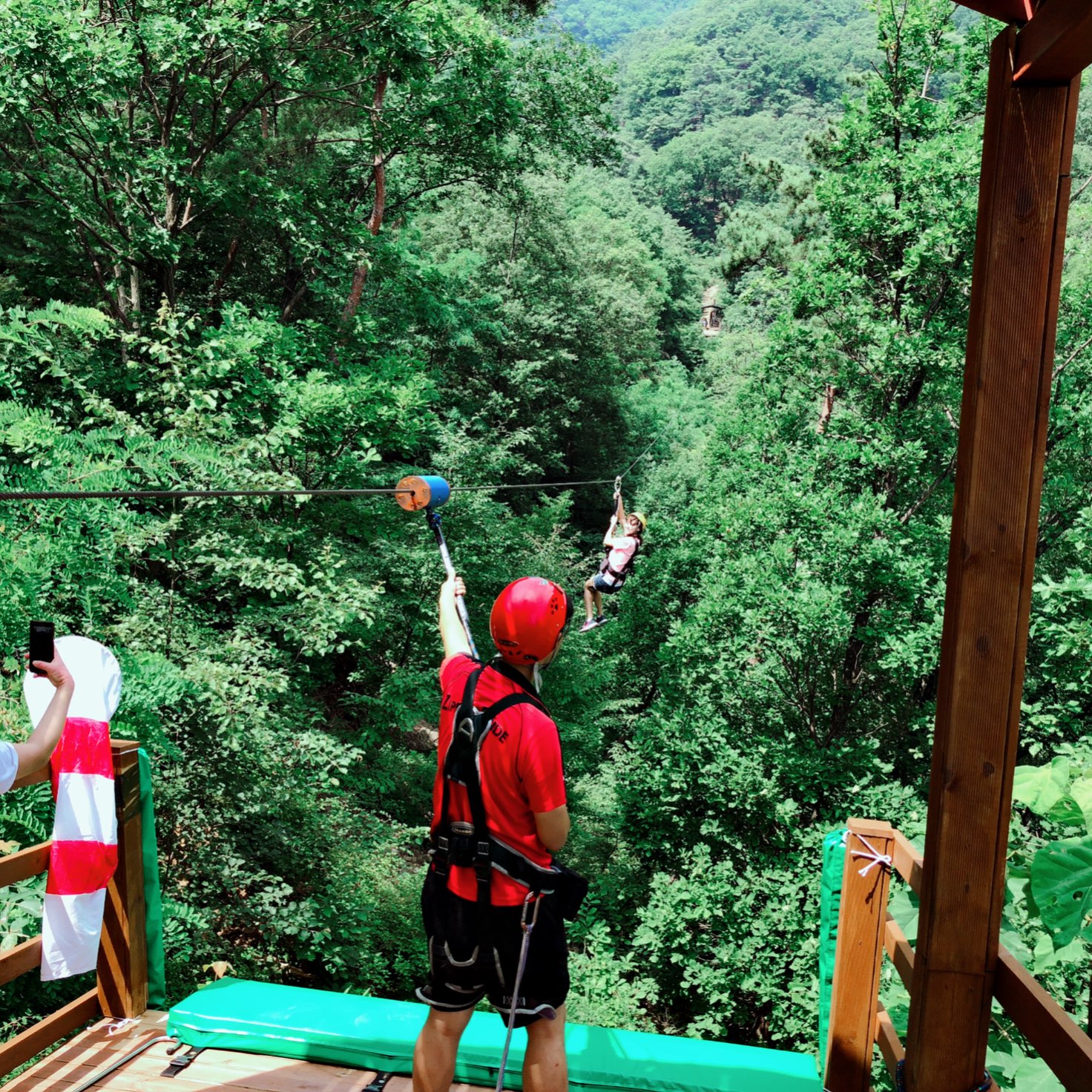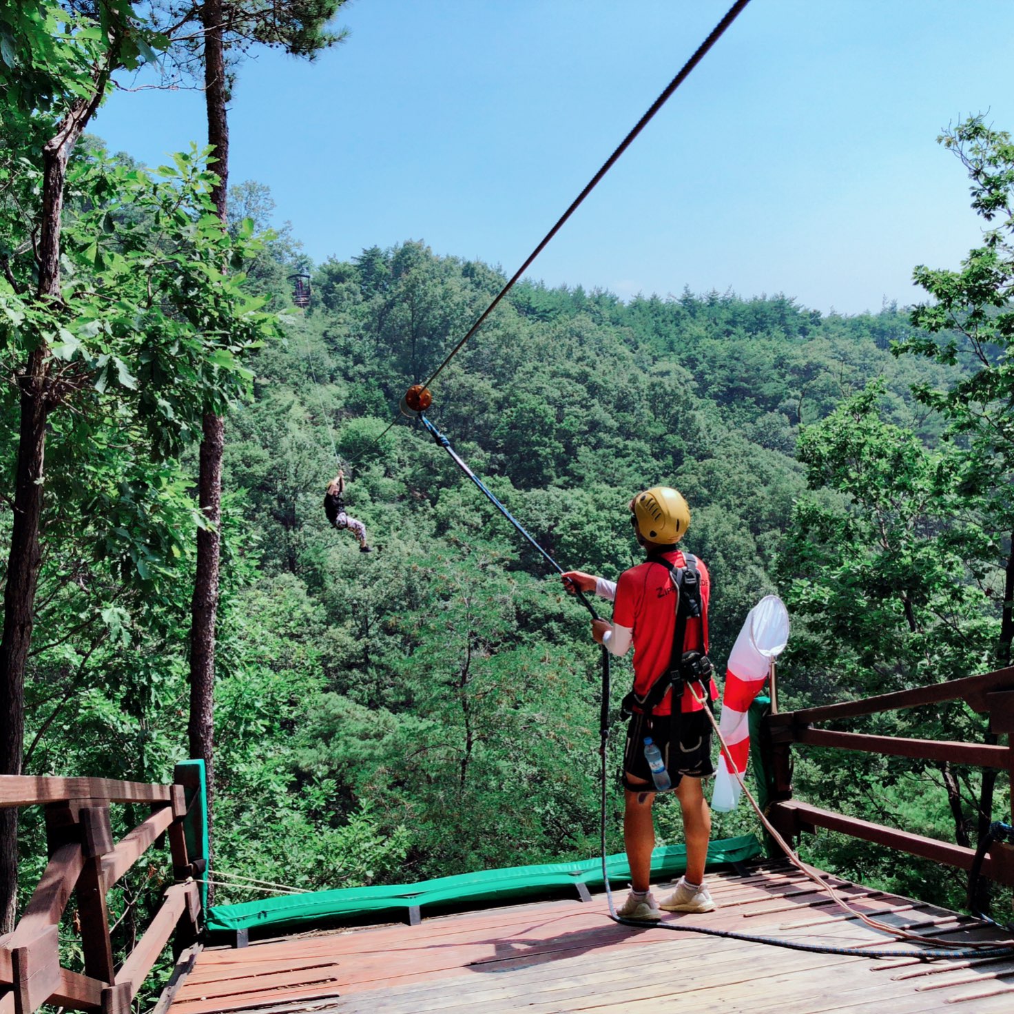 • 문경에 짚라인 유명하길래~ 놀러간김에 이때다 싶어 탓어요!! 친구들이랑 함께해서 너무 신났어요^^ 더군다나 함께한 가이드님들이 너무 재밌네요~ 잘생긴 배영준 가이드 & 선글미남 우람 가이드 덕분에 더 신나게 즐기다 왔습니다~ 날씨는 더웠지만 푸릇푸릇한 산들과 하늘 보며 힐링하고 왔어요^^